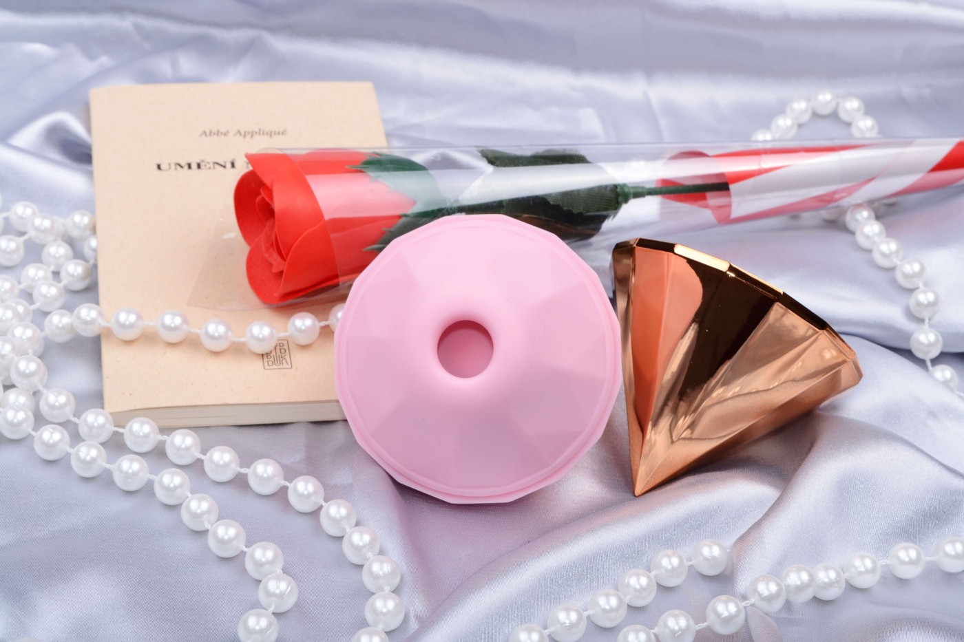Kombinace něžné pudrově růžové barvy a odstínu rose gold rozzáří erotickou sbírku jako šperk.