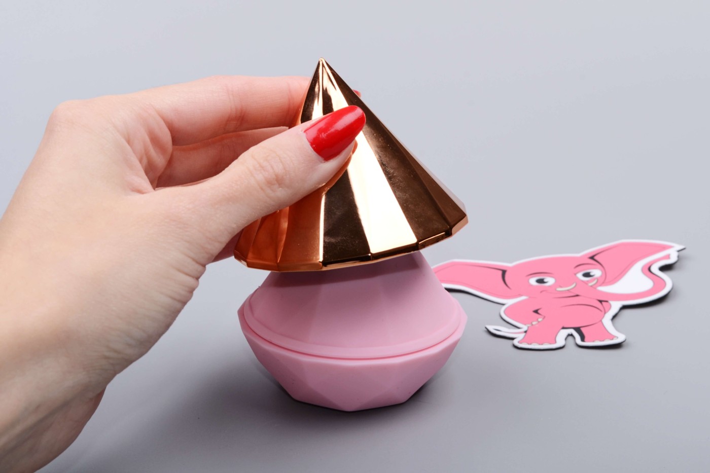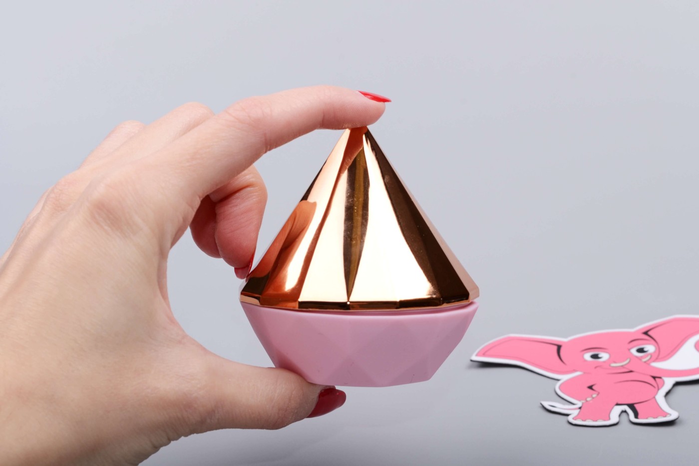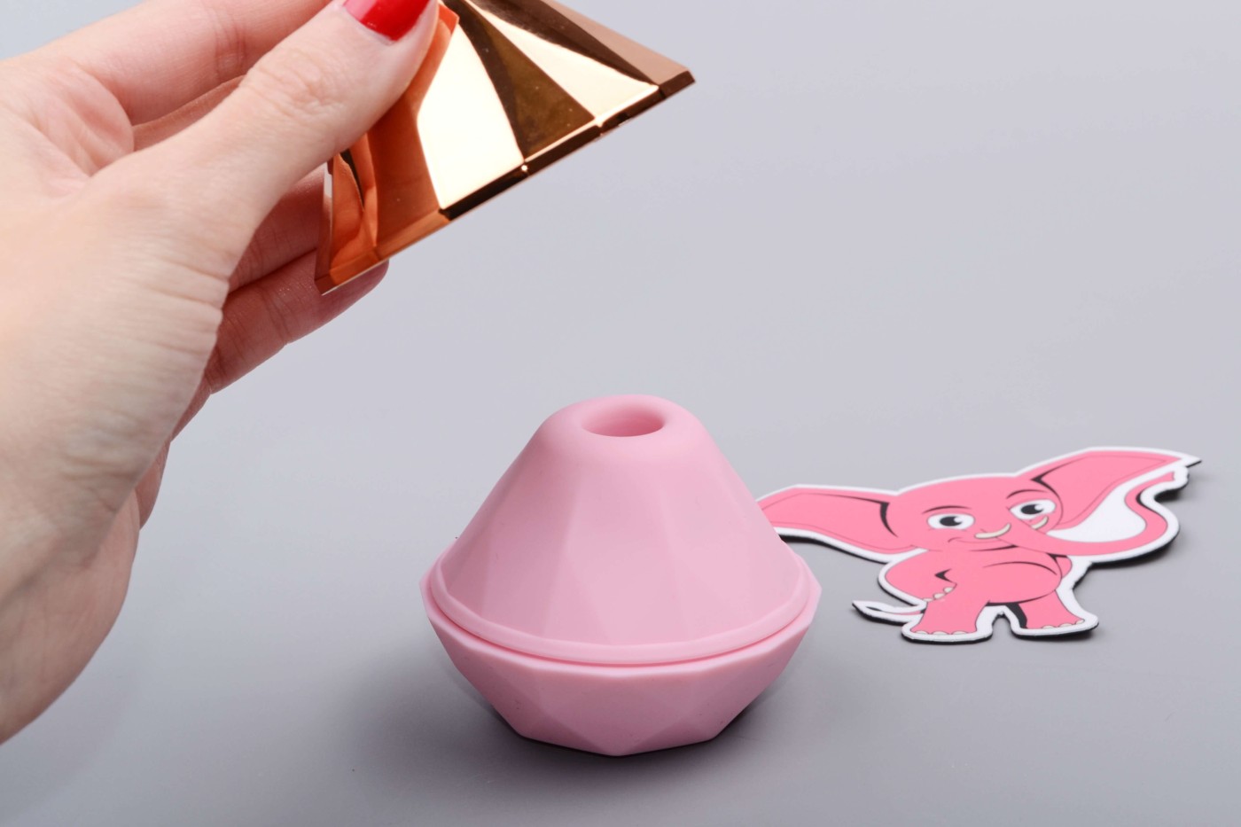 Tlaková pomůcka v kompaktní velikosti působí elegantním dojmem a díky originálnímu designu broušeného diamantu na první pohled nepoznáte, že se jedná o erotickou hračku. Model s ergonomicky tvarovaný tělem a rafinovanou strukturou se dobře drží v ruce při masturbaci a nepřekáží ani při sexu. Zlaté víčko ve tvaru jehlanu, pod kterým se ukrývá stimulační hubička, dodává pomůcce luxusní vzhled a zároveň chrání hubičku před nečistotami.