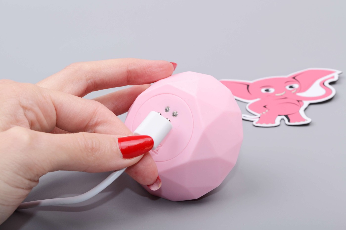 Hračka vám přijde od výrobce z části nabitá. Před prvním použitím ji ale doporučujeme dobít do plna. Prodloužíte tím životnost baterie. Pomůcka se dobíjí pomocí přiloženého USB kabelu. Konec s magnetickým konektorem připojíte ke dvěma kovovým bodům na spodní straně hračky, plochý konektor pak zapojte do adaptéru na mobilní telefon nebo do powerbanky. V průběhu dobíjení trvajícího 90 minut uvidíte problikávat ovládací tlačítko, které po dobití pomůcky zůstane svítit. Pak si dámy s tlakovou pomůckou vychutnají 85 minut rozkoše.