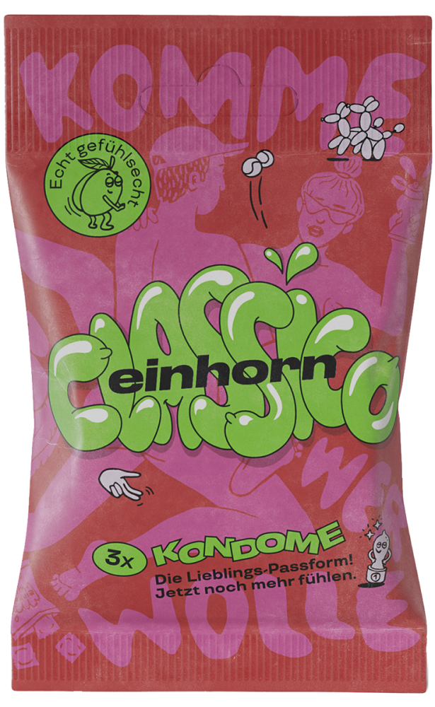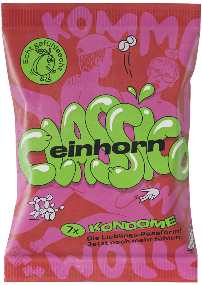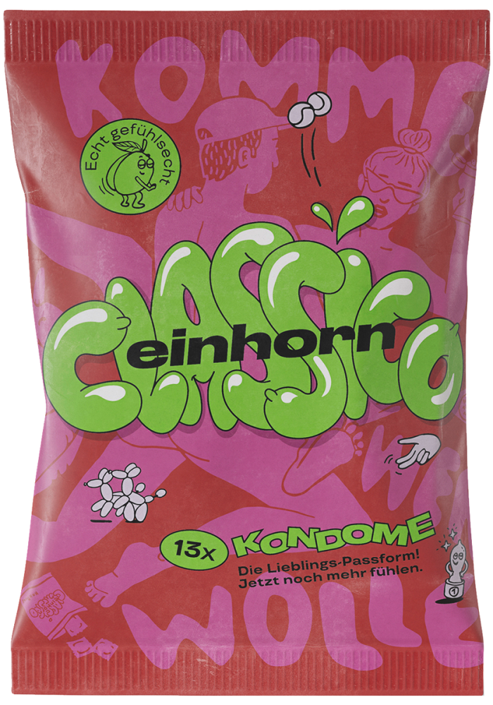Einhorn Condoms: CLASSICO, 13 vegan condoms in the chips bag