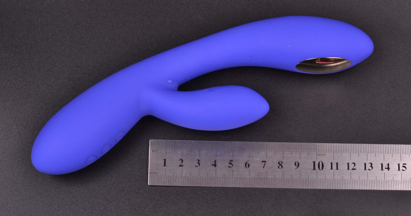 Modrofialová barva v kombinaci se zlatými plíšky na špičce vibrátoru vás odnese s sebou daleko vstříc rozbouřenému oceánu slasti.