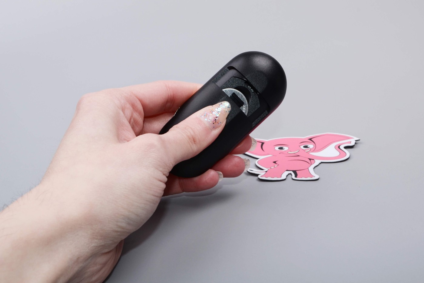 Dálkový ovladač funguje díky knoflíkové baterie typu CR 2032. Tu vám výrobce posílá už vloženou a chráněnou bezpečnostní fólií před vybitím přímo v ovladači. Druhý kus pak najdete přiložený v krabičce. Před prvním použitím musíte ochrannou fólii z ovladače vytáhnout. To uděláte tak, že pomocí palce přiloženého na zadní stranu ovladače sejmete kryt silným tahem v protisměru šipky, kterou výrobce naznačil na krytu. Po odstranění fólie nebo výměně baterie pak krytku zasuňte zpátky.