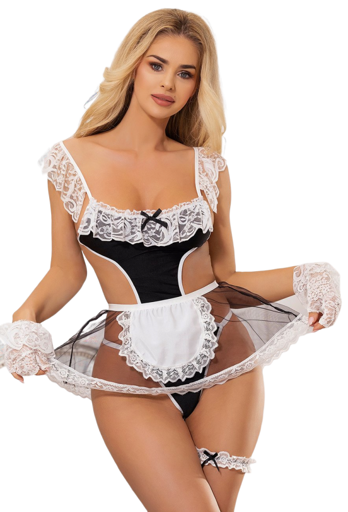 Kostým sexy uklízečky je moc fajn. Skládá se z body, zástěry, rukaviček a podvazku. Body je pohodlné. Zástěra ve formě sukýnky má v pase gumku, takže se dobře obléká. Nejvíc mě ale zaujaly rukavičky. Jejich ultra hebký a příjemný materiál je boží. Moje ruce se v nich cítí jako v nebi. Kostým jako takový není vůbec složitý. Hned jsem přišla na to, jak si ho obléct. Body si můžu upravit nastavitelnými ramínky i obvodem na zádech. Celkově mi tenhle kostýmek připadá povedený. Cítím se v něm sexy, ale přitom prádlo není přehnané vyzývavé. Naopak mi připadá dost hravé. A toho si při roleplay cením nejvíc.