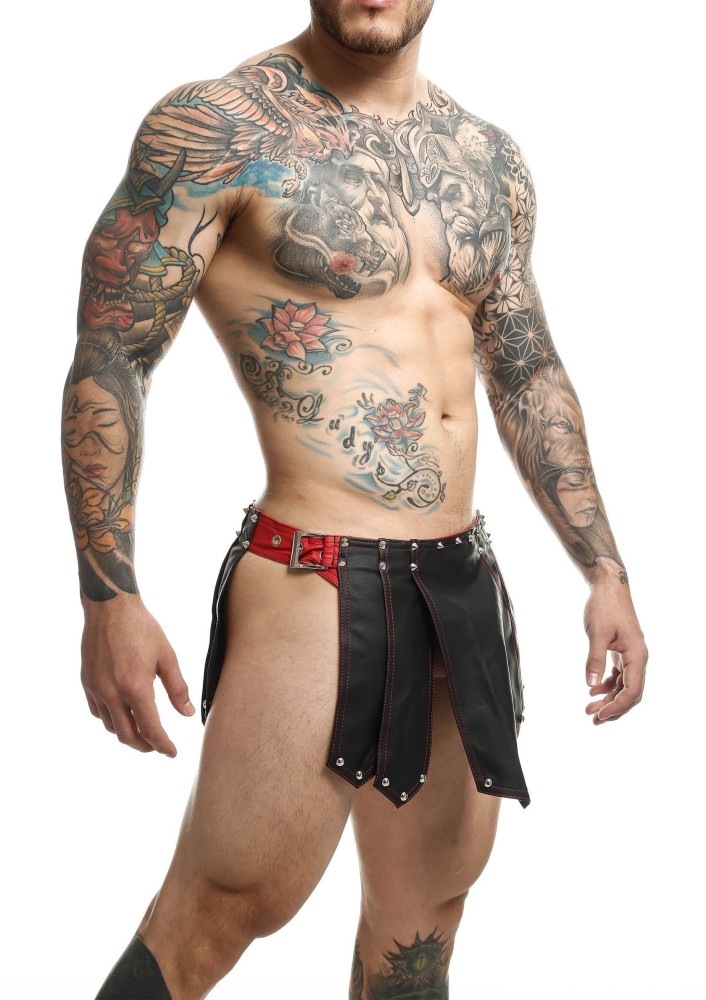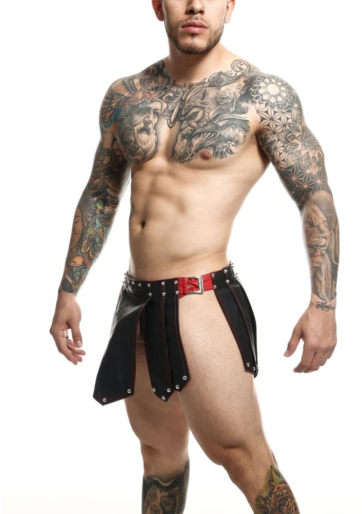 S koženou sukní ve stylu římského válečníka od MOB Eroticwear budete připraveni rozpoutat ve vaší ložnici nebývalou vášeň a odhodlání. Tento charismatický kousek prádla je ideální pro oživení stereotypu a vnesení nového rozměru do vašeho intimního života. Sukně je navržena tak, aby dokonale seděla a díky svému originálnímu designu otevřenému po stranách zaručila maximální přizpůsobení vašim potřebám. Budete se v ní cítit sebevědomě, muži i ženy ji ocení při každé příležitosti. Výrazný trojúhelníkový design na zádech a vpředu z ní činí nepřehlédnutelný kousek. Připravte se na pohledy plné obdivu a vytvořte si nezapomenutelné vzpomínky.