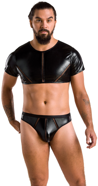 Díky netradičnímu pánskému kompletu crop topu a tang se muži stanou nepřehlédnutelnými a vychutnají si obdivné pohledy své druhé polovičky. V modelu vyniknou hlavně pánové štíhlé postavy, kteří zazáří na BDSM a fetiš párty nebo v gay klubu. Komplet taky parádně rozšíří sbírku erotického prádla všem, kteří si libují v extravagantních kouscích.
