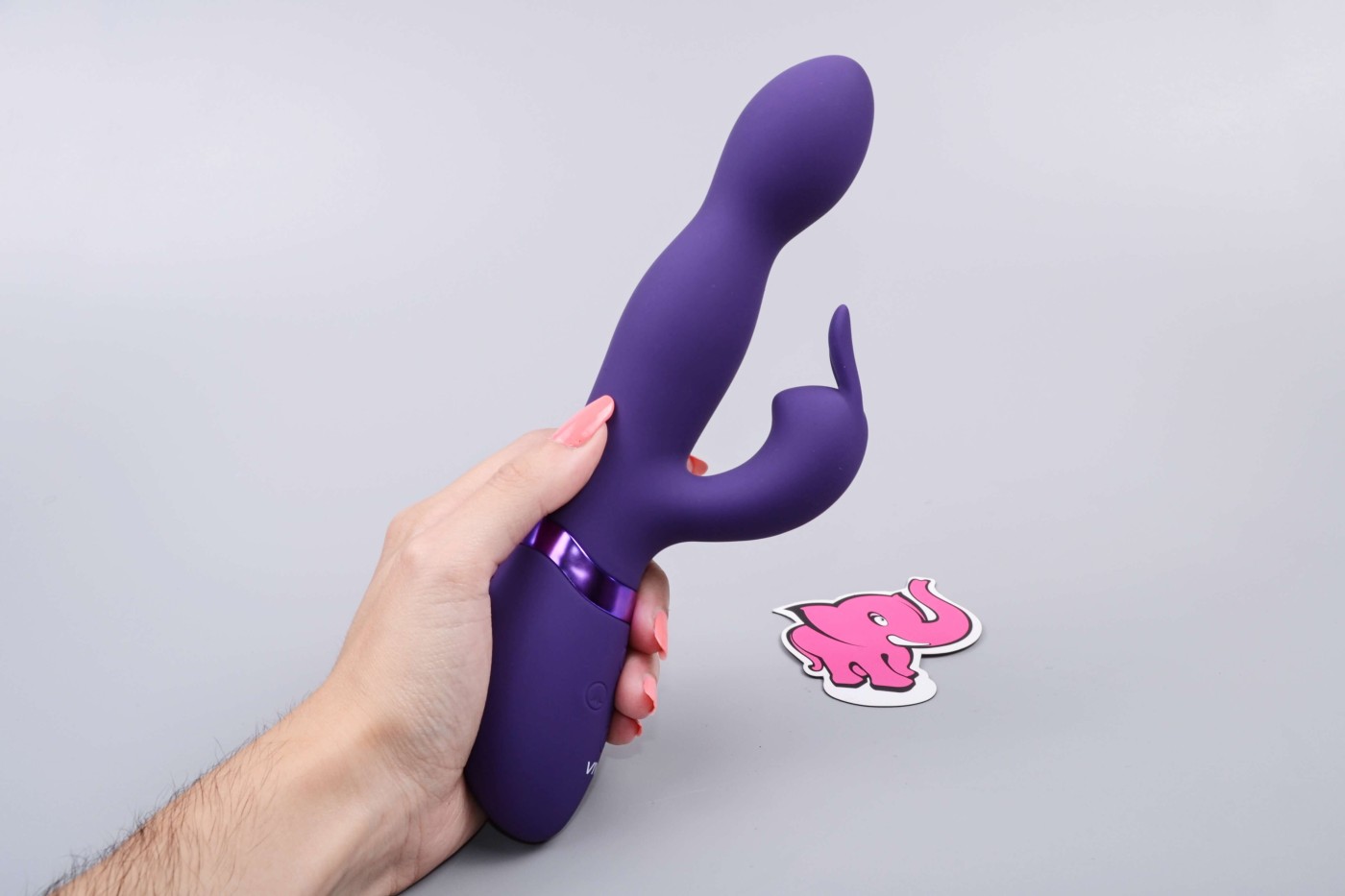 Moderní design pomůcky působí elegantně a uhlazeně. Lehce zaoblená rotační špička a dvojité zakřivení vaginální části příjemně dráždí bod G. Vibrátor se dobře drží v ruce a ovládací panel na rukojeti s pěti číselně označenými tlačítky nepřehlédnete. Výběžek na klitoris s ohebnými oušky evokuje zajíčka.
