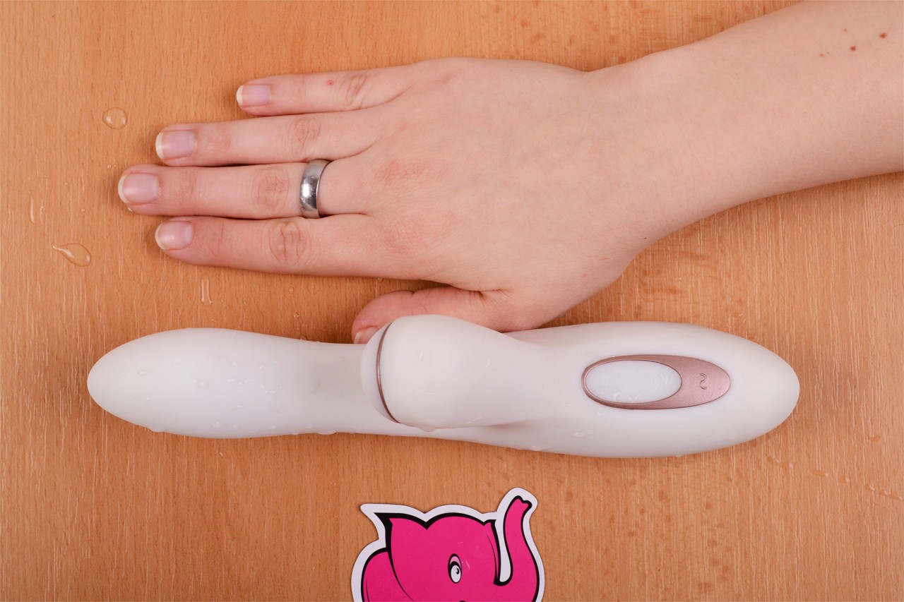 Och, jak jsem se těšila na tohoto miláčka. Vibrátor na klitoris a G-bod zároveň. Už na první pohled působí luxusně. Krémová barva a ozdobné prvky, které připomínají růžové zlato. Elegán, jak se patří. Jenom ho zasunout do klína. Perfektně dosáhl na klitoris a zároveň dráždil bod G. Proto jsem hned věděla, že orgasmus bude mokrý, hlasitý a bouřlivý. Zapnula jsem vibrace, klikala, abych vyzkoušela všechny, a vrátila se ke klasickým silným vibracím. Vibrace jsou silné, hrubé a opravdu mi zahnutý tvar dráždil bod G. Udělala bych se během chvilky jenom takhle. A co teprve, když jsem spustila tlakovou stimulaci. Dráždění klitorisu pomocí tlakových vln je dokonalé. Musela jsem se krotit, abych nezačala hlasitě řvát. Byla to smršť. Tak rychle jsem snad v životě nebyla. Úplná pecka. Jsem nadšená!