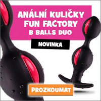 - Fun Factory B Balls Duo: Když se zavádějí, jsou jako anální kolík, ale uvnitř každé silikonové kuličky je ještě jedna odlehčená. Ty vytvářejí při aktivitě příjemné vlny a masážní pocity.