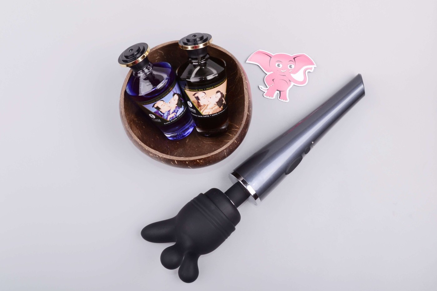 Násada na masážní hlavici vypadá trochu jako chobotnice. Díky měkkému silikonu se jednoduše nasazuje na vibrátor a dobře na něm drží. Její tři kulaté, pevnější, výběžky intenzivně přenáší vibrace a rozprostírají je do svého okolí. Celkově násada působí originálně.