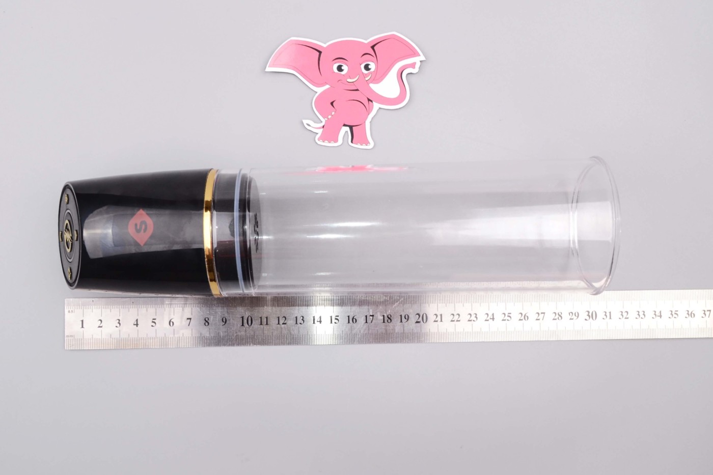 Vakuová pumpa v klasickém, rovném válcovém tvaru s černým ovládacím panelem se dobře drží v ruce a vypadá luxusně. Vystouplá ovládací tlačítka zdobí zlaté detaily. Dlouhý a široký válec se hodí i pro stimulaci nadprůměrně obdařených mužů. Díky zkosené horní straně ovládacího panelu se pomůcka dobře ovládá. Umělá vagina s jemnými vnitřními výstupky příjemně stimuluje penis po celé délce. Tato moderní automatická pumpa s funkcí sacího masturbátoru udělá radost každému muži.