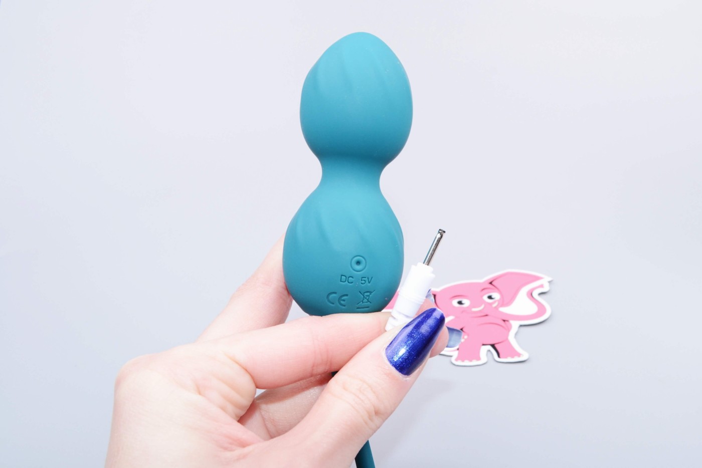 Pomůcka vám přijde od výroby z části nabitá, ale před prvním použitím ji dobijte do plna. Prodloužíte tím životnost baterie. V krabičce najdete přibalený USB kabel. Jednu stranu s kulatým konektorem zastrčte do zaslepené dírky s označením DC. Druhý konec zapojte do adaptéru na mobilní telefon nebo do powerbanky a počkejte 70 min, než se kuličky nabijí. Po tuto dobu uvidíte rytmicky problikávat ovládací tlačítko, které zhasne, až hračce dodáte šťávu. Potom si s ní dámy užijí 50 minut rozkoše.