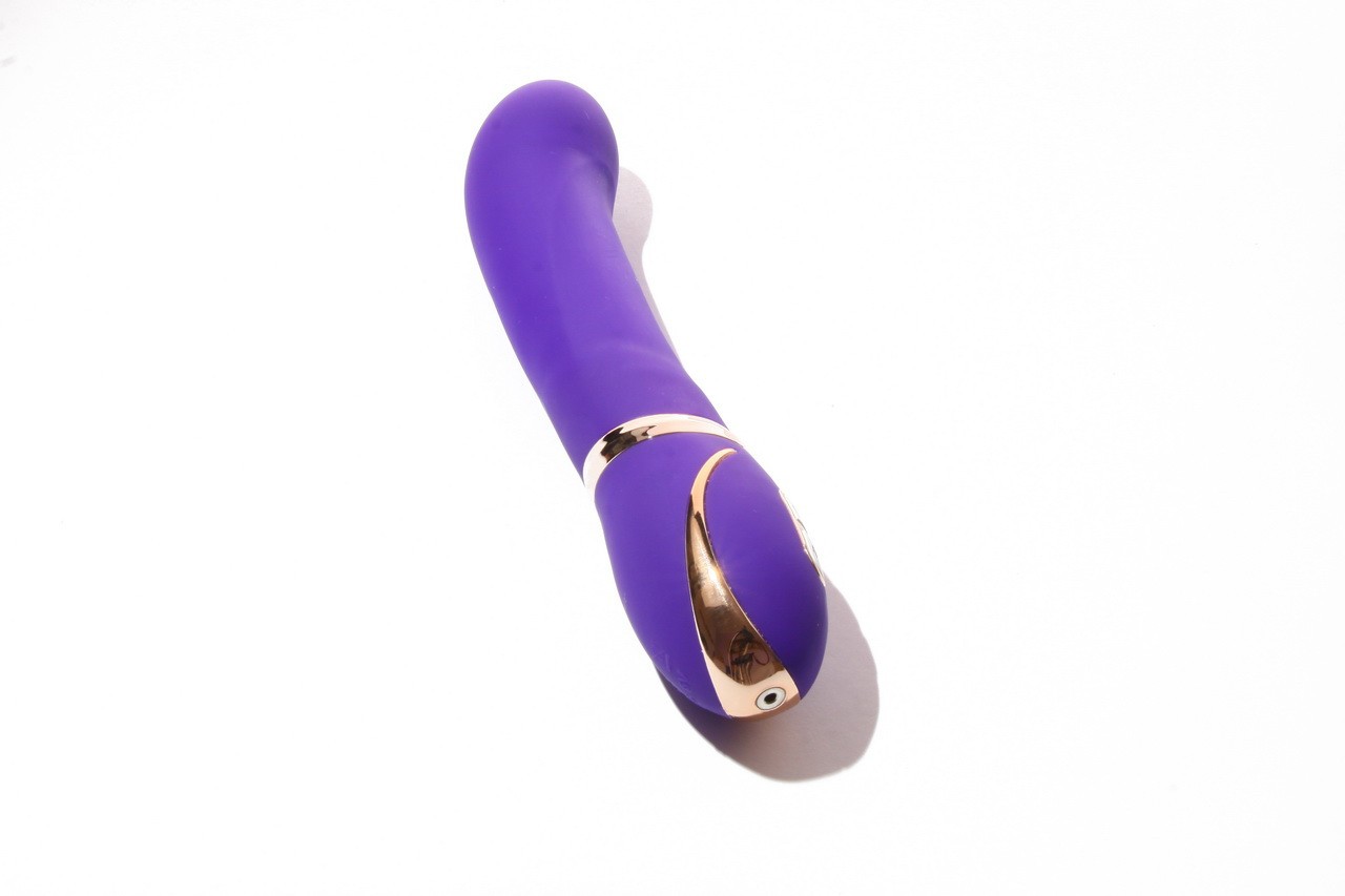 Podlouhlý tvar přirozeně a plynule přechází do zahnuté, mírně rozšířené špičky, která bude přesně mířit na bod G a další citlivé body hlouběji ve vagině. Pozlacené lemování v ovládací části dodává vibrátoru šmrnc. Vibrátor najdete uložený v hezké krabičce pod průhlednou fólií.