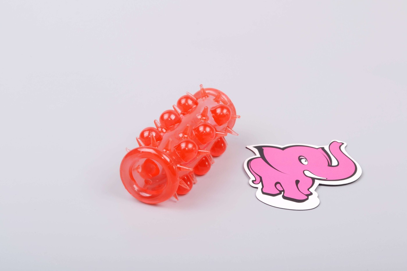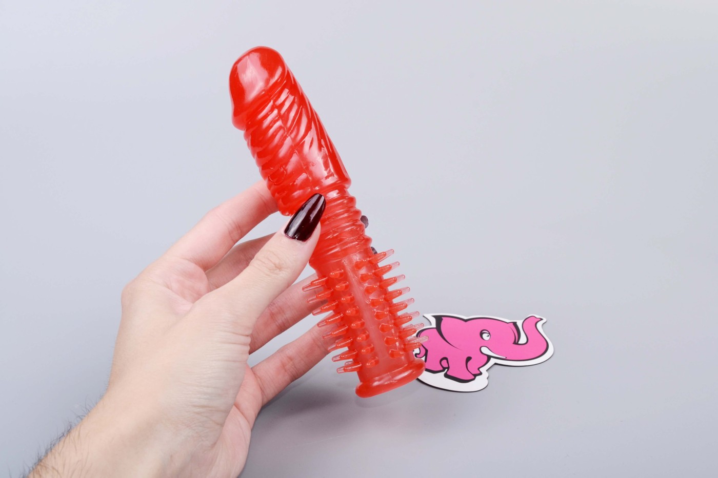 Nakonec v sadě najdete dva návleky, které snadno navlečete na hladký vibrátor nebo na prst. Na kratším, otevřeném návleku najdete střídavě čtyři řady výrazných, ale měkkých výstupků ve tvaru bodlinek a tři řady kulatých masážních bodů.