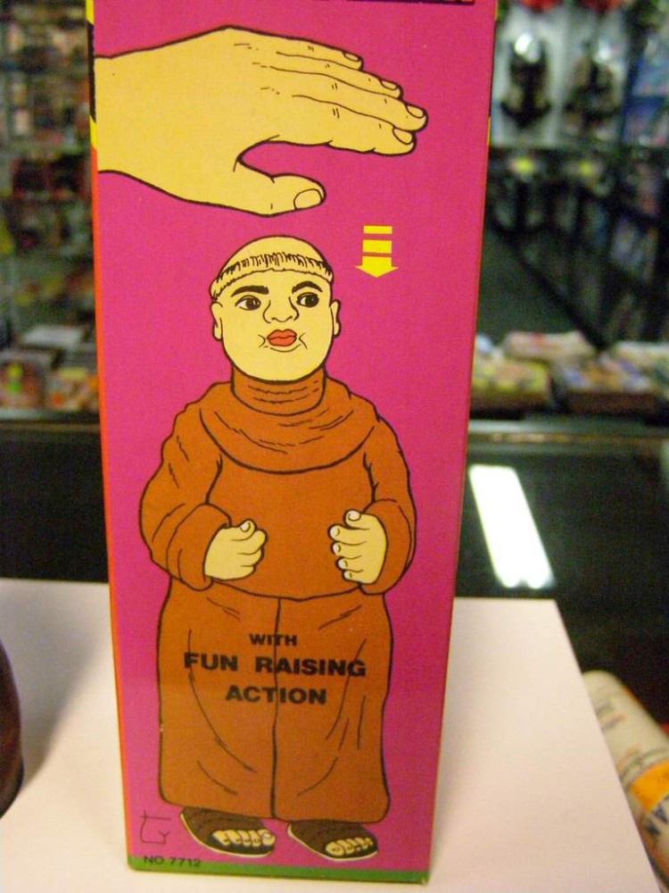 Mnich, kterému se po stisknutí hlavy postaví penis. Vhodný dárek třeba pro nábožensky založené ženy :) Realisticky provedená postavička mnicha. Tvářičky buclaté, holá hlavička, oblečený v tmavém hábitu. Pod hábitem na vás čeká překvapení v podobě ....... :)